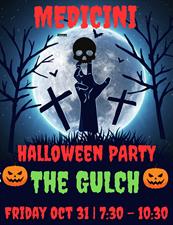 Whether you are a witch, a goblin, a vampire, a ghoul, a ghost or a banshee, you are summoned to witness and weather the horror with The Gulch as we celebrate Halloween at Medicini. Grand Papa Tim and the staff have posted a $50.00 award for the best costume. Winner must have a pulse.